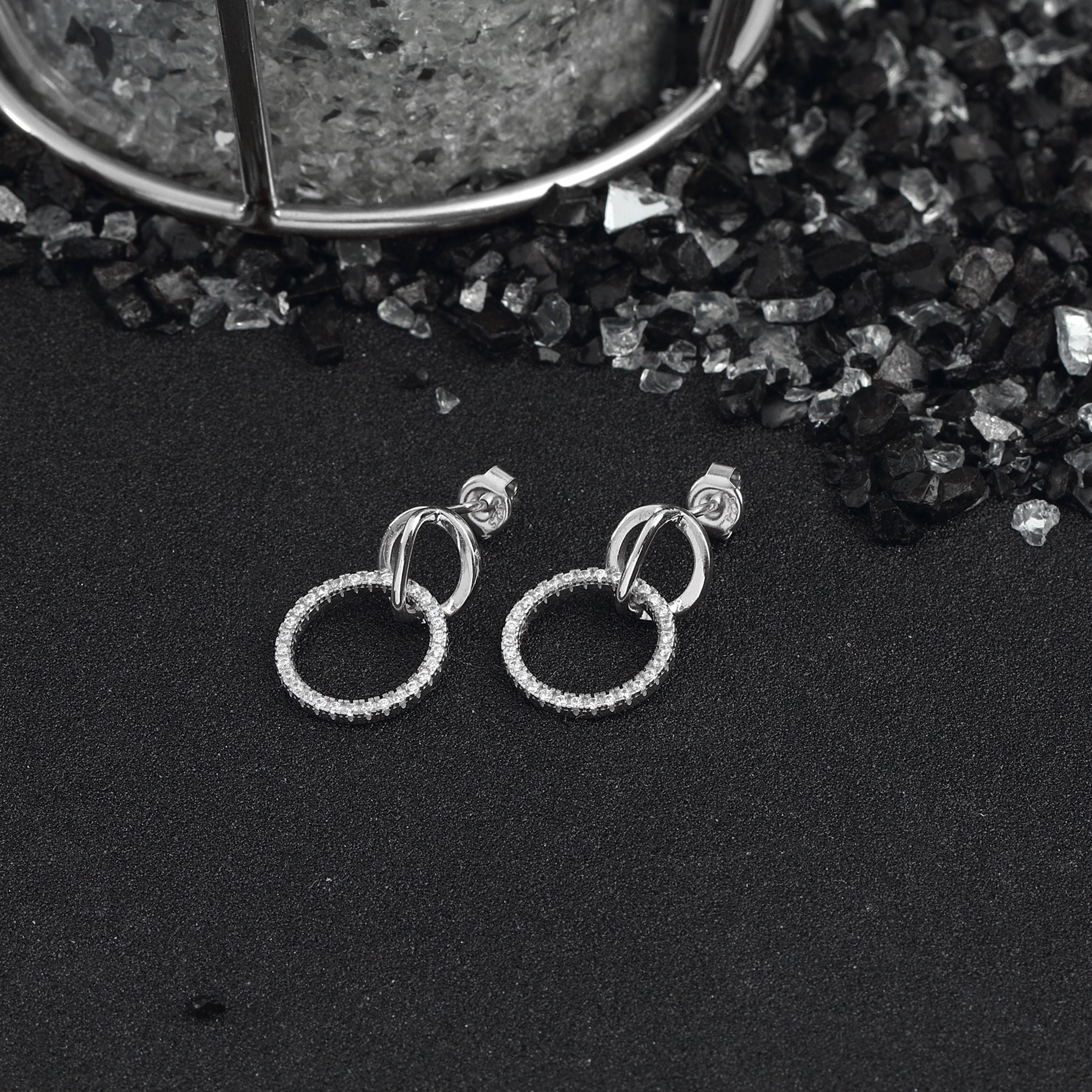 Hoop Dangle Drop Earrings, Circle Earring Studs, Diamond Elegance Earrings, s925 Bridal Jewelry