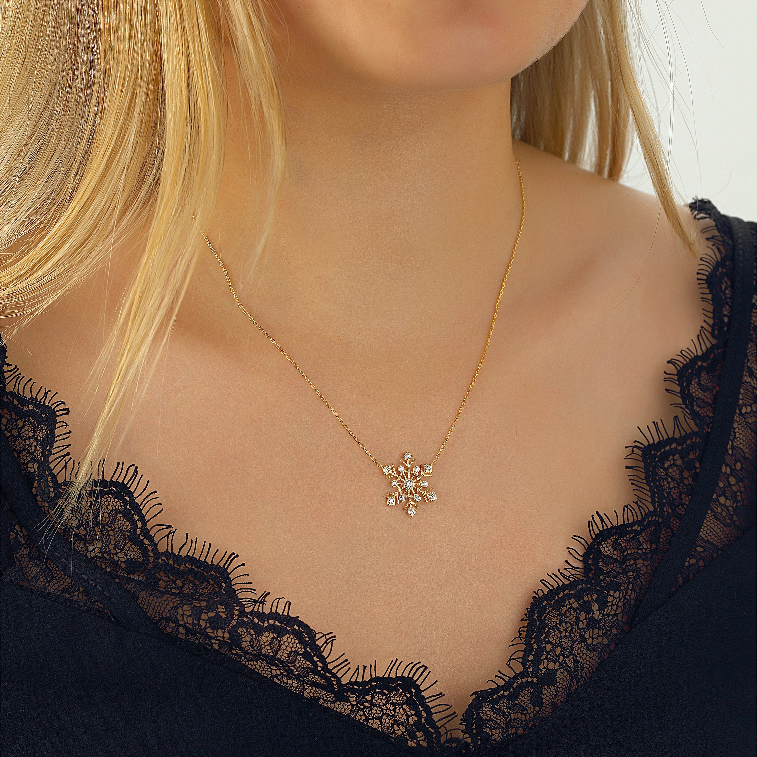 Whether it's a Christmas gift, an anniversary surprise, or a birthday present, this snowflake necklace is a timeless expression of love. Its dainty gold-filled chain adds a touch of elegance, making it a standout piece in winter jewelry collections.