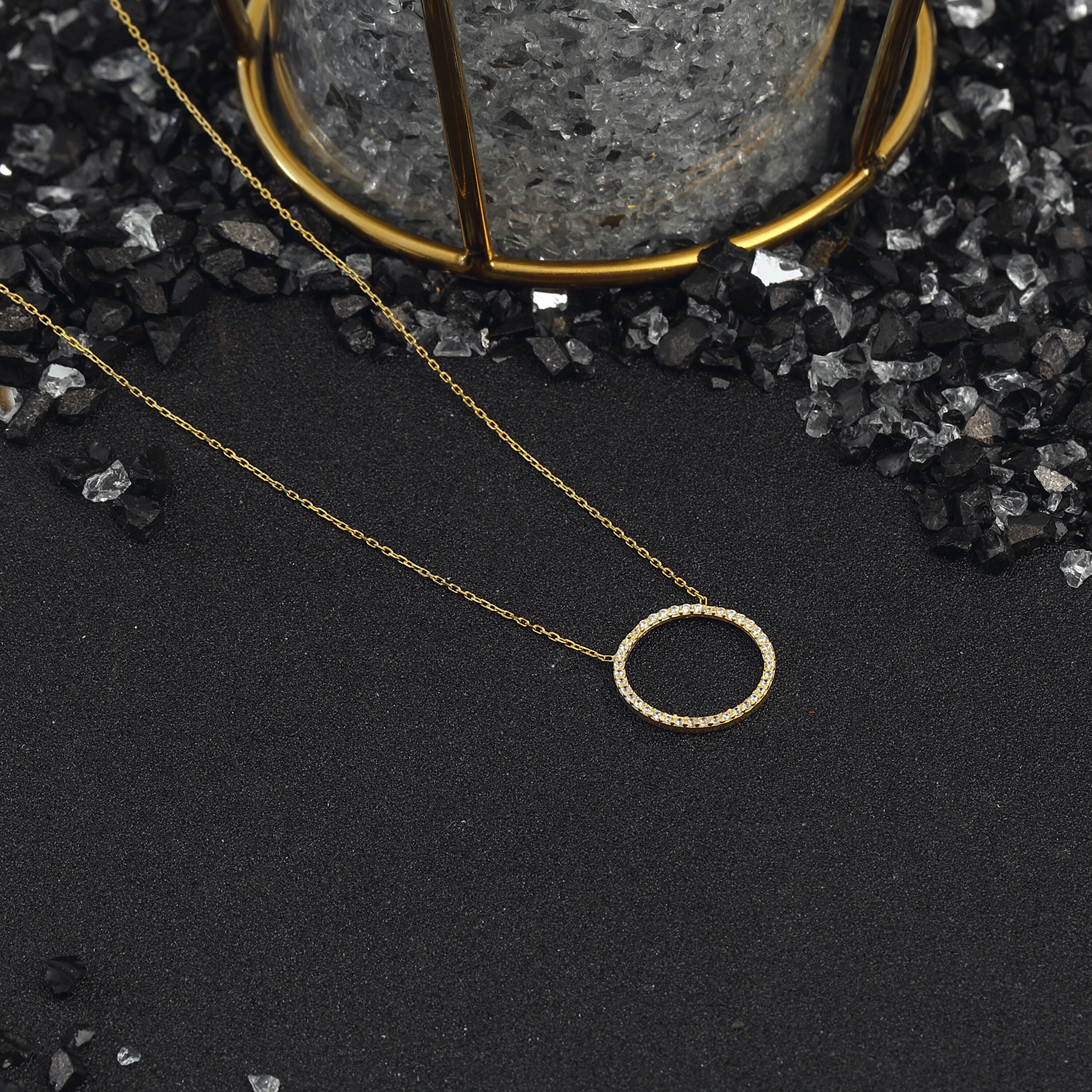 Gold Plated Sterling Silver Circle Necklace: Zircon Wedding Jewelry
