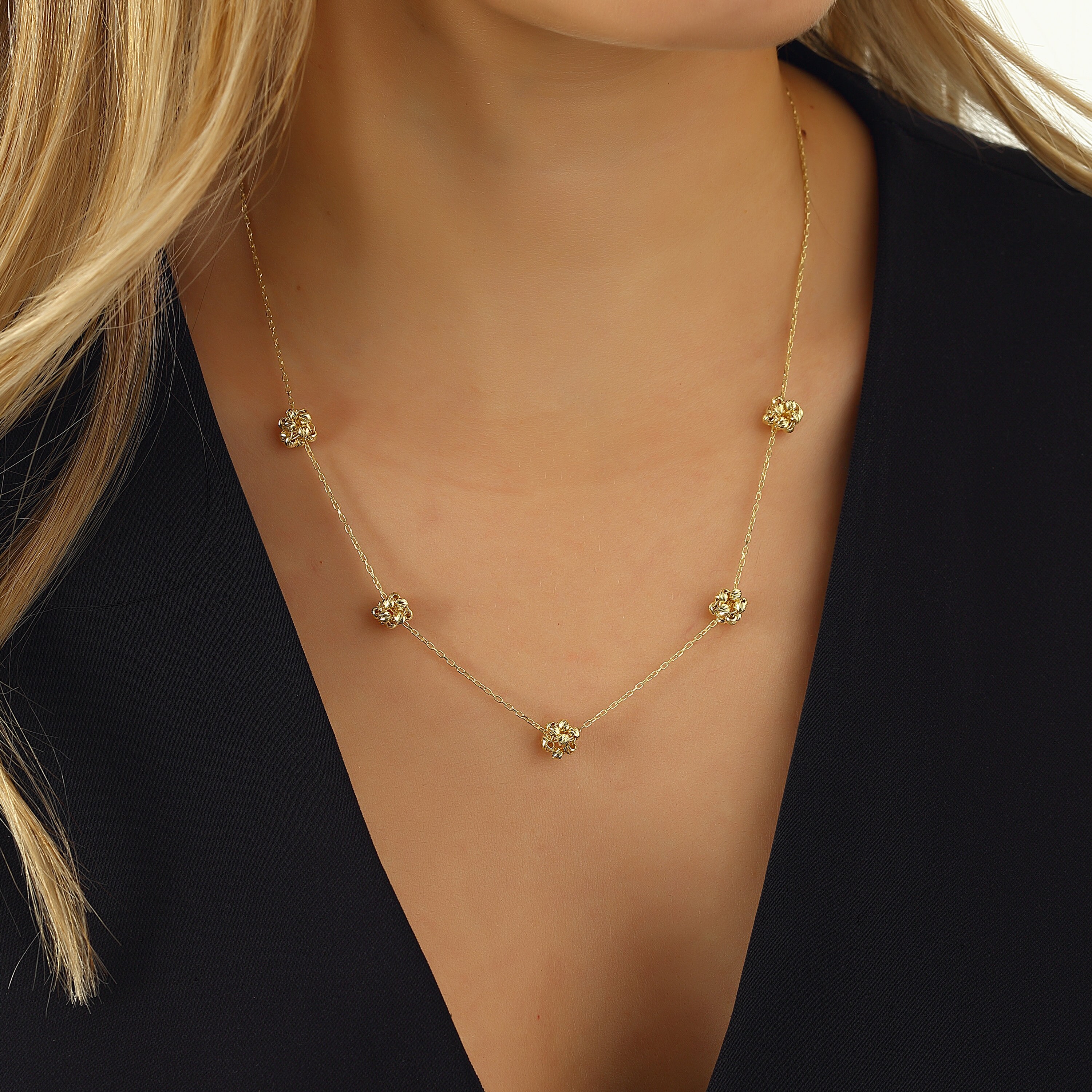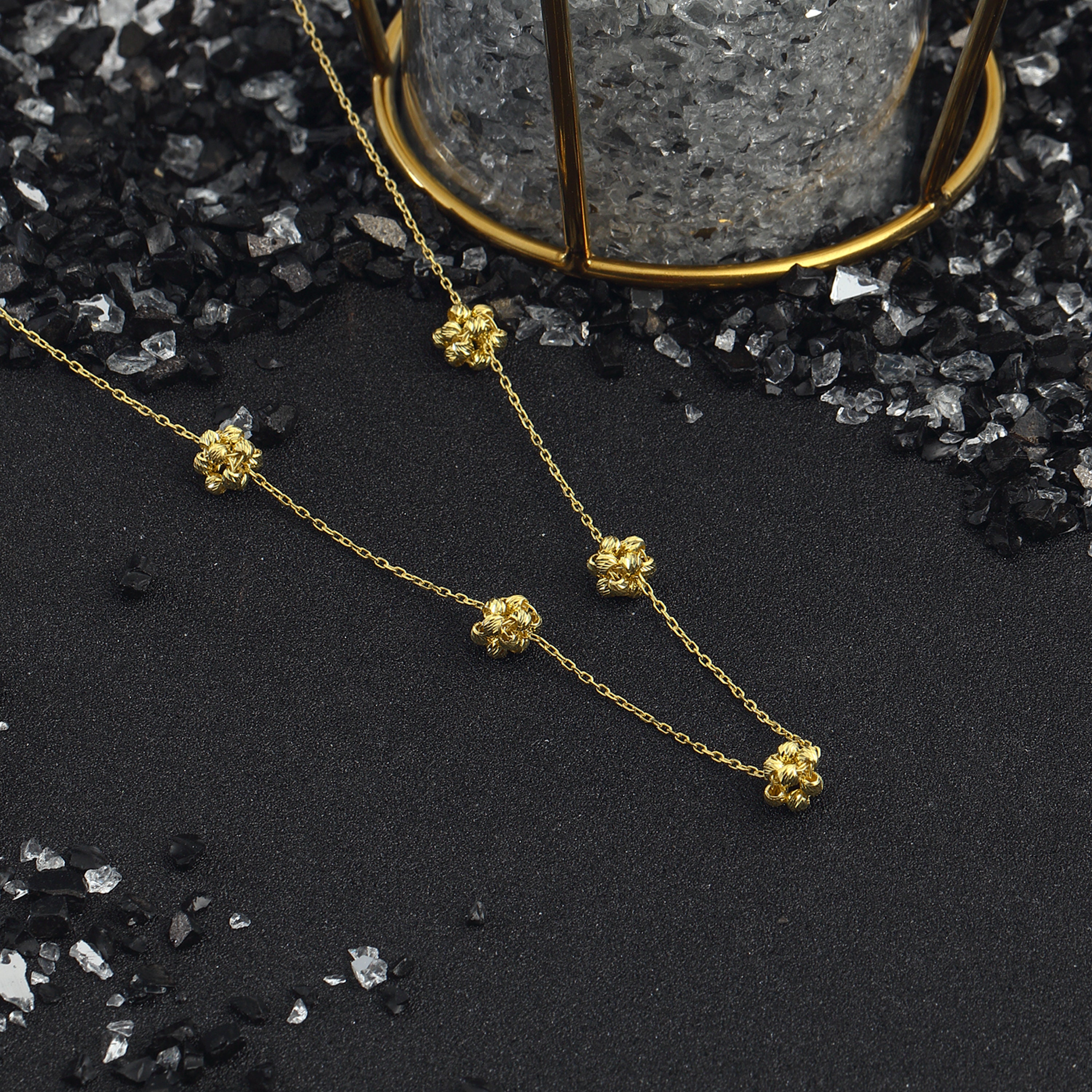 Sterling Silver Flower Charm Necklace: Dainty Gold Plated Chain