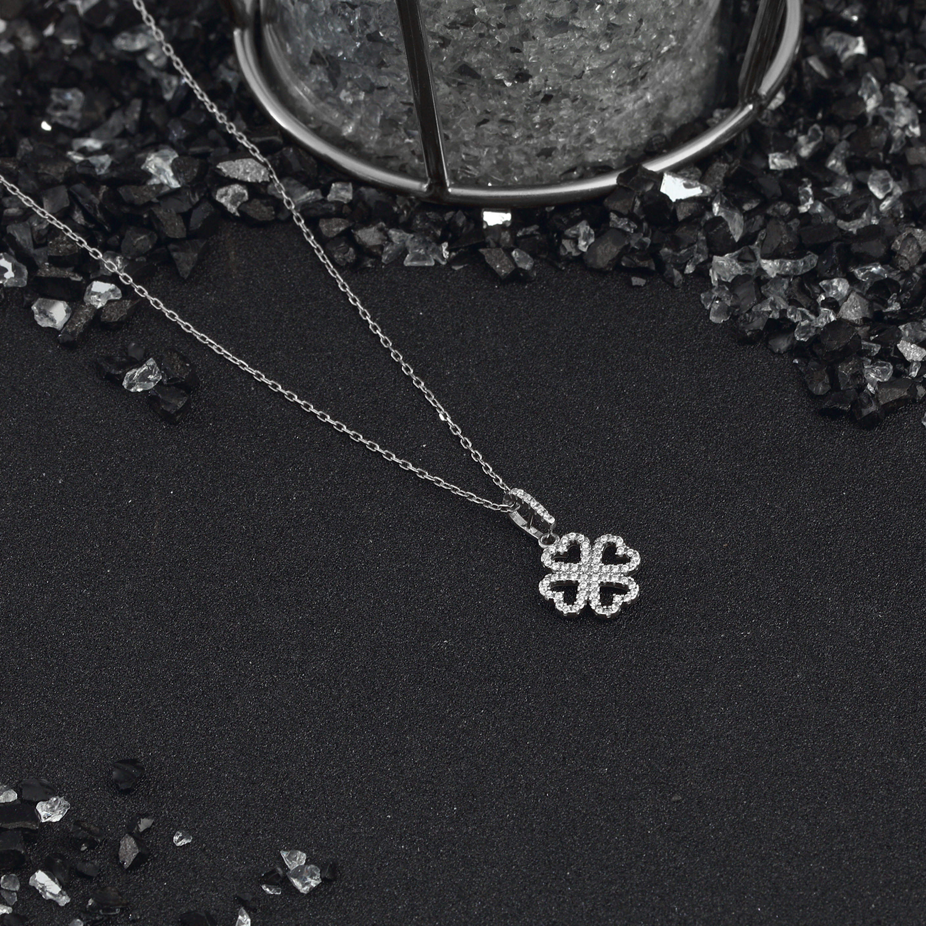 Clover necklace is made of 925 sterling silver. It is embellished with the best quality first-class zircon stones on the clover heart leaves.