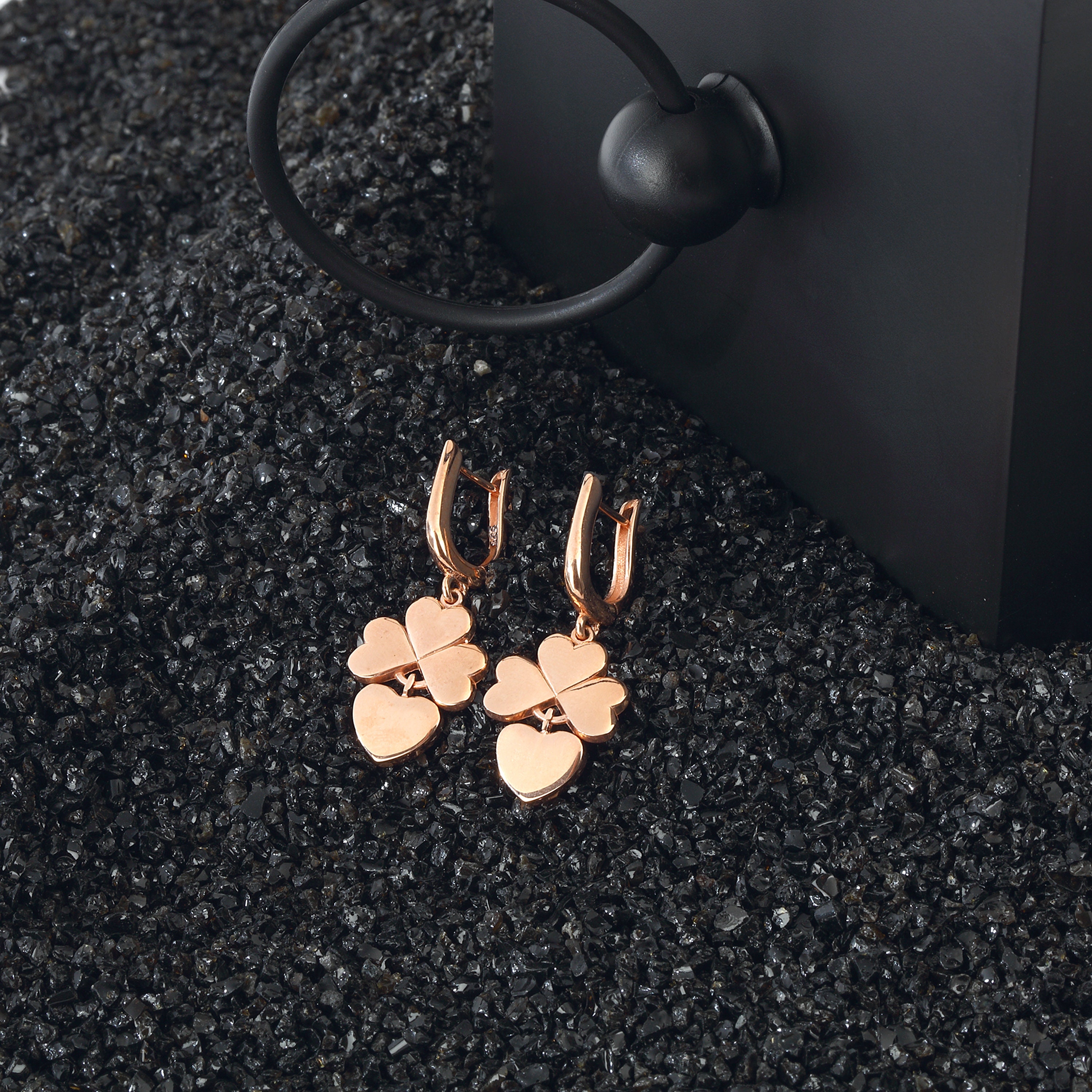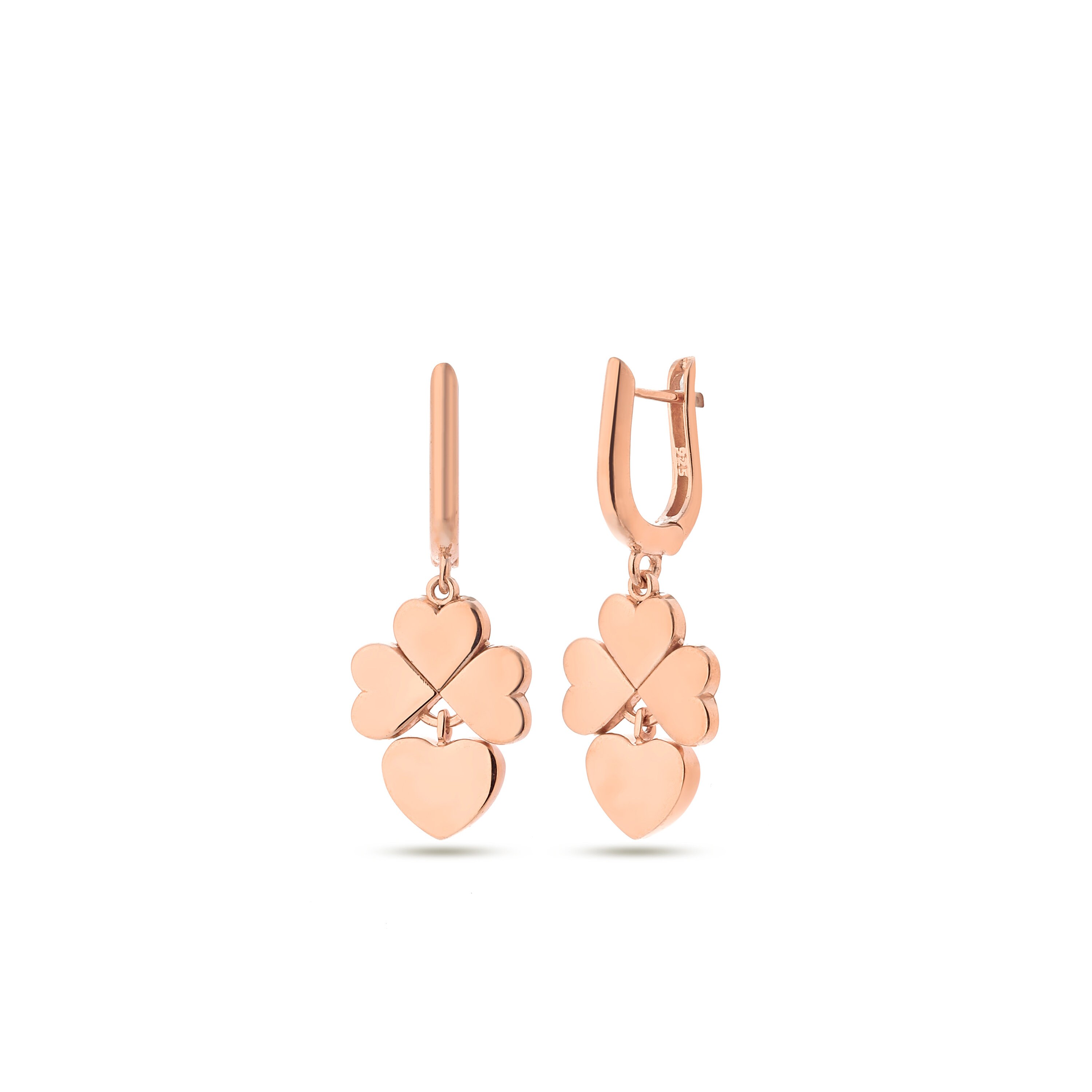 Clover Earrings: 14k Rose Gold Plated Sterling Silver Heart Shamrock