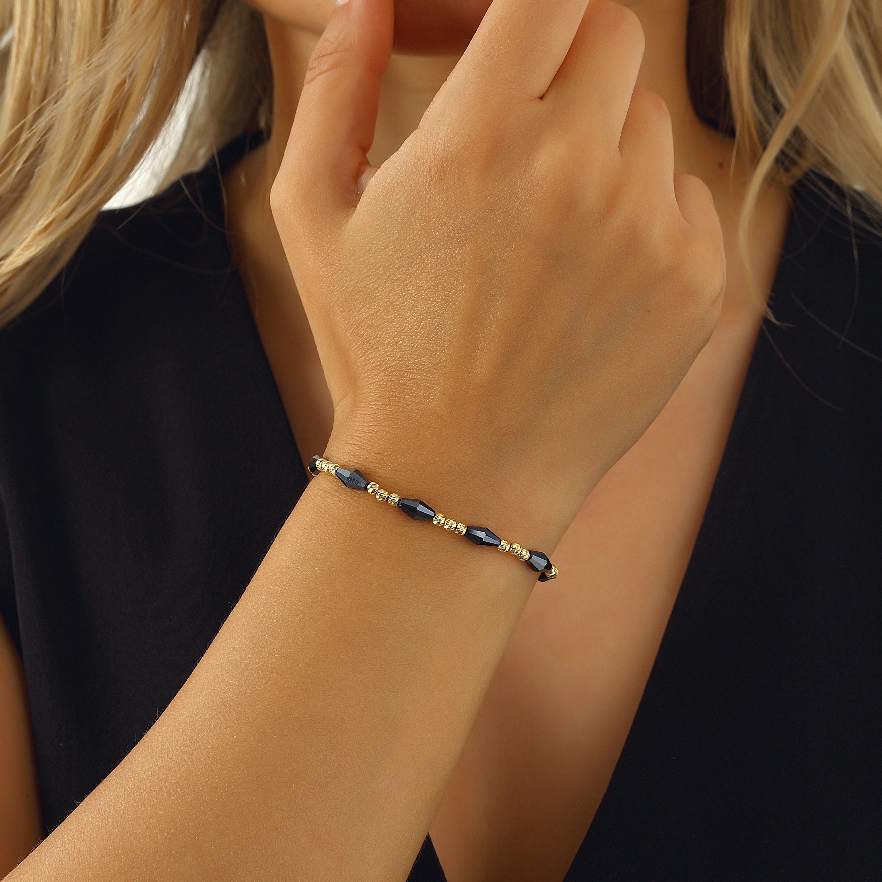 Lapis Lazuli Bracelet: Gold Filled 925 Sterling Silver Beaded Bracelet