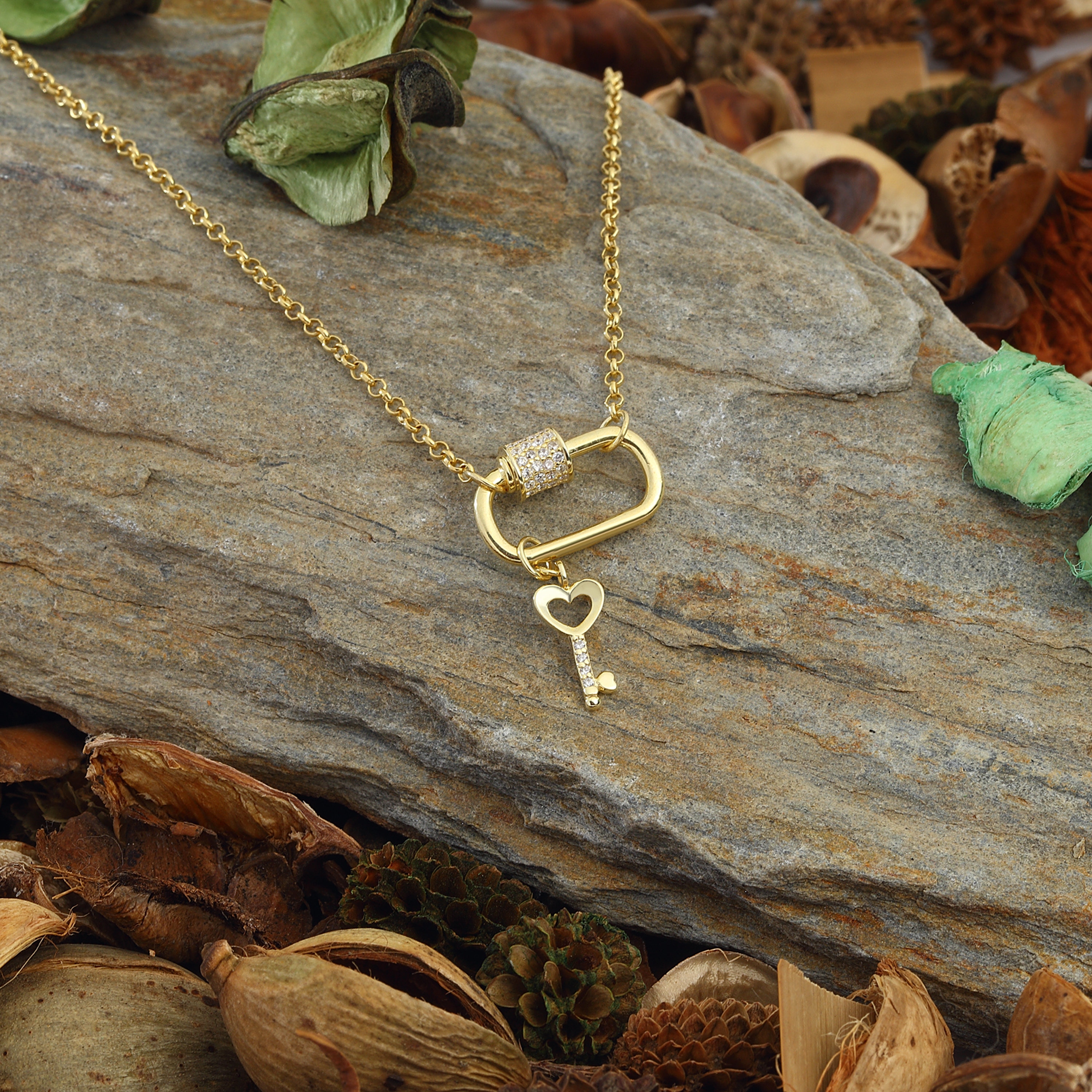 Love Lock Key Necklace: Zircon 14k Gold Plated Sterling Silver